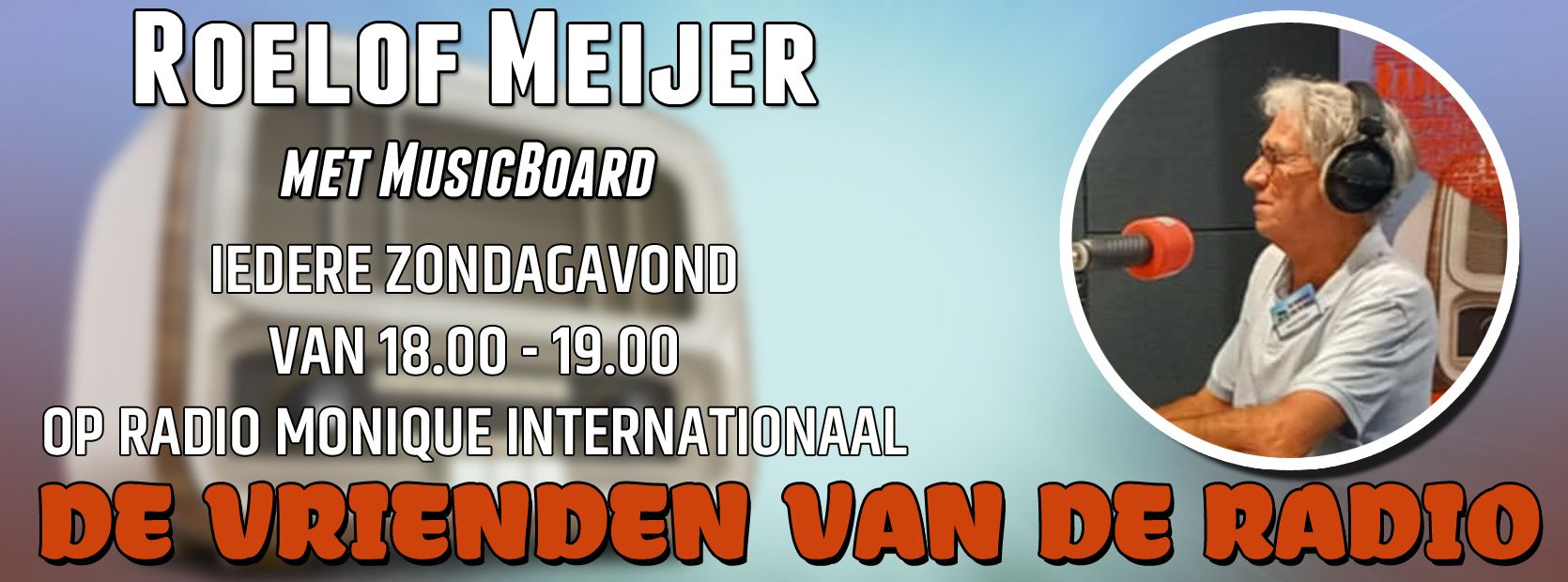 De radioprogramma’s van de Vrienden van de Radio worden wekelijks uitgezonden op Radio Monique Internationaal, te ontvangen via de ouderwetse middengolf – 1332 kHz AM – of heel modern streaming via internet: luister via Radio Monique of via je favoriete radio-app (zoals Tune-In) naar Radio Monique Internationaal. En de programma’s van de Vrienden van de Radio terugluisteren kan ook!